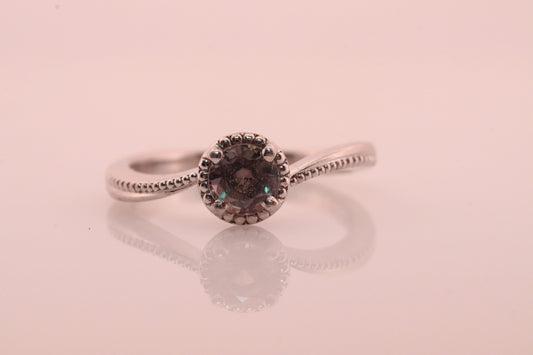 Genuine Alexandrite Ring. Platinum setting round Natural ALEXANDRITE ring. Simple Platinum Solitaire.