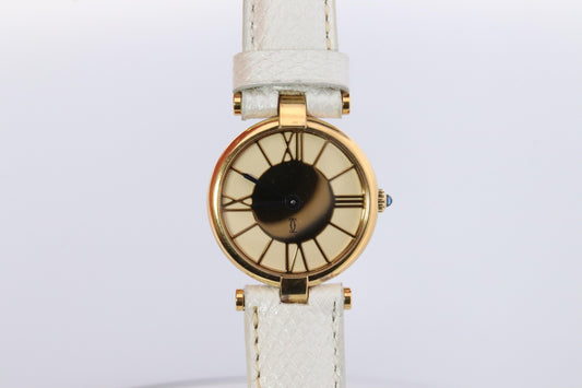 Genuine Cartier Watch. Must de Cartier Vendome Round Argent Vermeil White Face