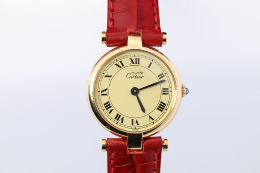 Cartier Watch. Must de Cartier Vendome Round Argent Vermeil 24mm Dial.