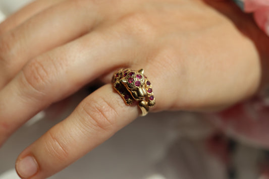18k Panther Leopard Jaguar Cheetah Ruby ring. Encrusted Rubies Ready to Pouce