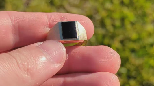 Moderner rechteckiger Onyx-Ring aus 14 Karat. Statement-Ring mit Onyx-Bezel-Set für Herren. Lagerbestand(143/75)