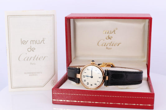 Genuine Cartier Watch. Must de Cartier Vendome Round Argent White Arabic Face