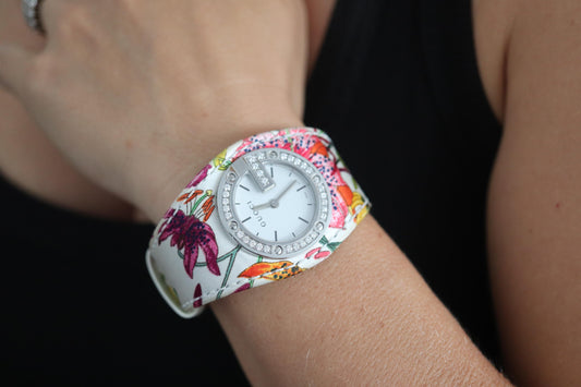 Vintage GUCCI Quartz 104 Watch. Gucci Diamonds and Flower Colorful Ladies.