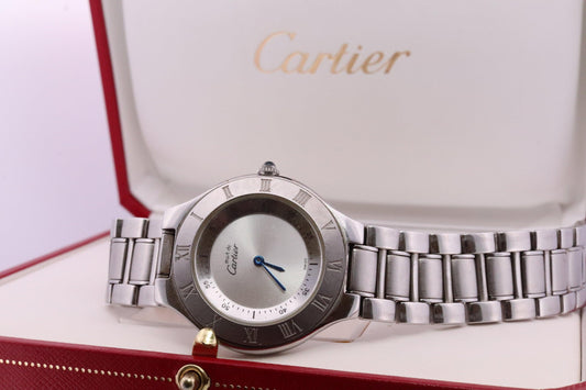 Genuine Cartier 1330 Watch. Must de Cartier 21 Stainless Steel Quartz Watch.