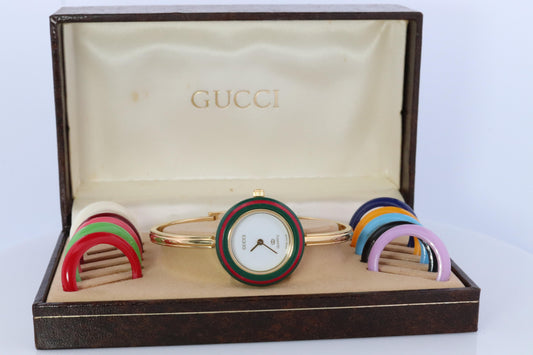 Vintage GUCCI Quartz 1100L Watch Color Bezels Gucci Ladies Bangle watch with BOX