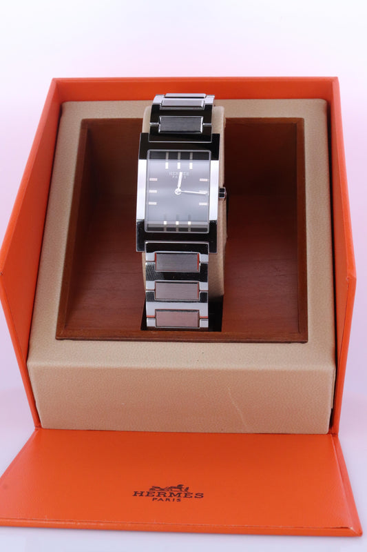 Genuine HERMES TA1.710. Hermes Tandem Stainless Steel Mens Rectangle Watch.