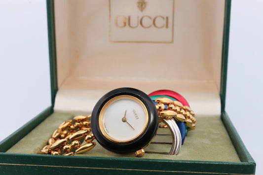 Genuine GUCCI 11/12 Watch. Vintage Ladies Gucci Change Bezel Watch. With Box and Bezels.