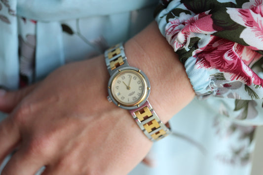 Hermes Watch. Ladies Genuine Hermes Clipper 514366 Gold and Silver Wristwatch.