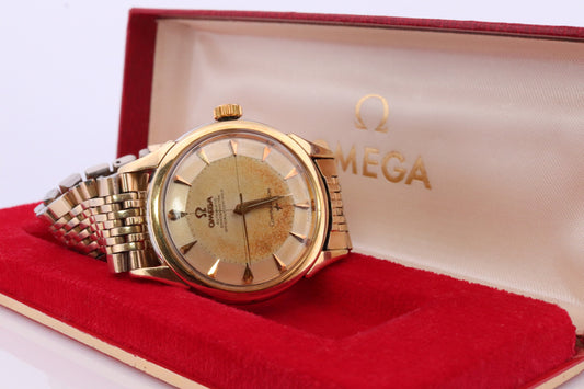 Omega Constellation Pie Pan Watch. Authentic Mens Omega Automatic 5852 Wristwatch. Omega 1950s Gold Plated Pie Pan Dial Arrowhead