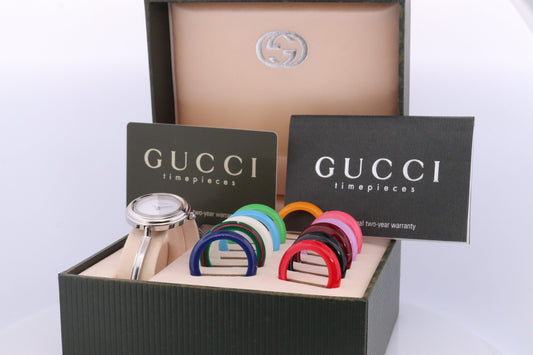 Genuine GUCCI 11/12.2 Watch. Vintage Ladies Gucci Change Bezel Watch. With Box and Bezels.