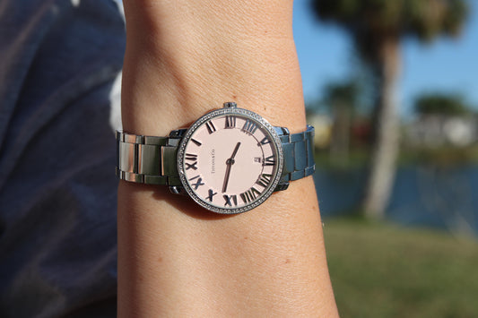 Tiffany and Co Watch. Tiffany Atlas Diamond Bezel 31mm PINK Dial Ladies Watch.