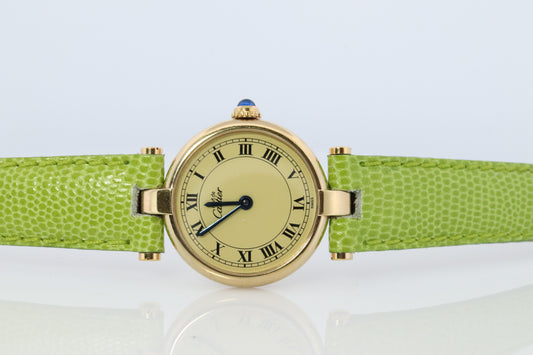 Genuine Cartier Watch. Must de Cartier Vendome Round Argent Vermeil White Face