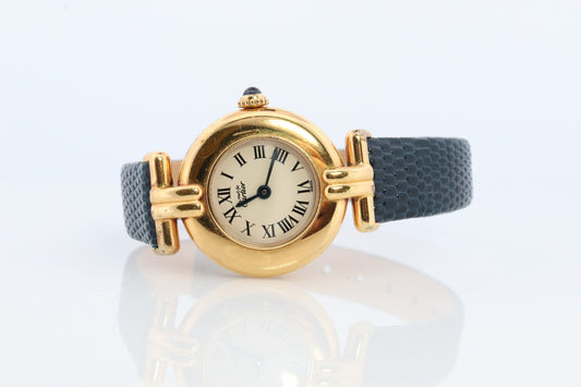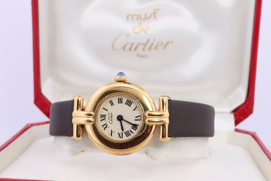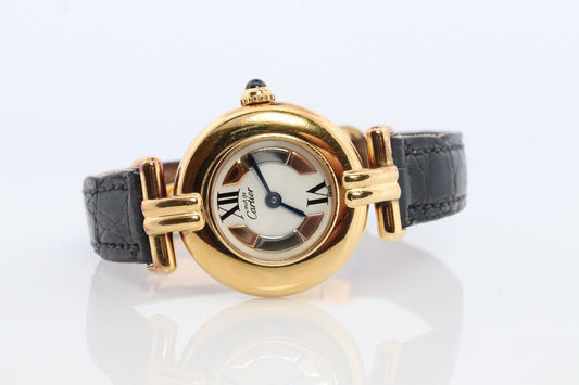 Genuine Cartier Watch. Must de Cartier Colisee Round Argent Vermeil Sterling Silver. Must de Cartier Trinity Face.