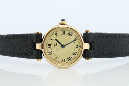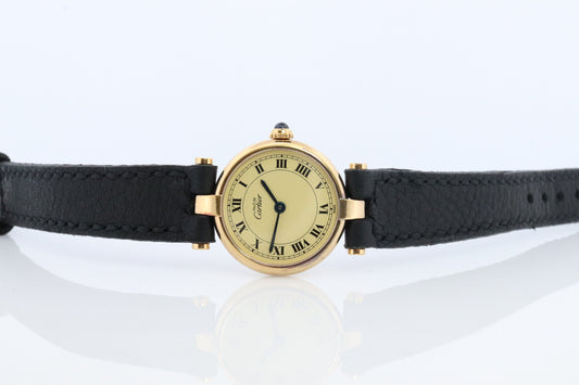 Genuine Cartier Watch. Must de Cartier Vendome Round Argent Vermeil 18k Sterling Silver. Must de Cartier 925 Ladies 590004 Watch