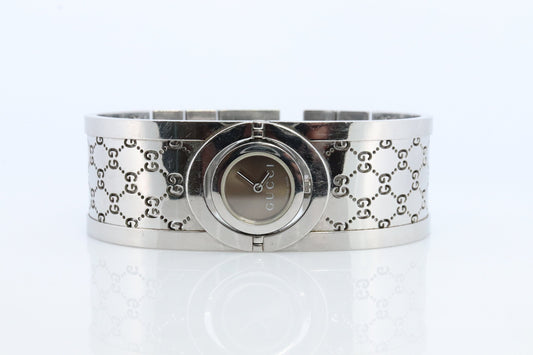 Vintage GUCCI 112 TWIRL Quartz Watch Timepiece. Gucci Wide Bangle Bracelet wristwatch.