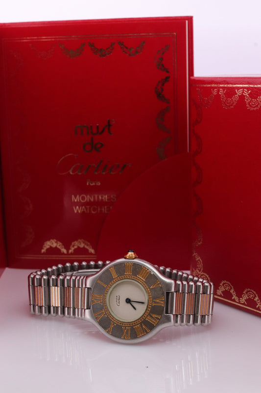 Genuine Cartier Watch. Must de Cartier 21 Stainless Steel Multi-Tone Quartz Watch. 28mm Vintage Cartier Wristwatch.