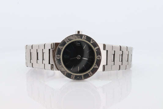 Vintage BVLGARI Uhr. Bulgari BB 23 SS Edelstahl-Quarzuhr. Damen-Luxusuhr für Damen. Schwarzes Zifferblatt.