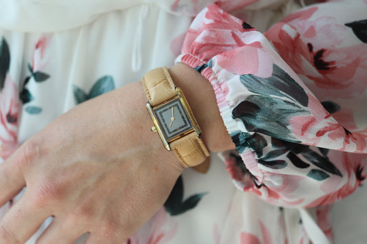 Bucherer Quartz wristwatch. Gold-tone bezel SWISS battery watch. Minimalist design. Serviced. Model 40171 Dp
