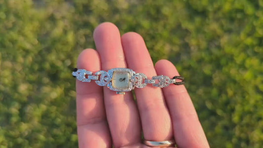 Hamilton-Uhr. Hamilton Damenarmbanduhr aus Platin und Diamanten mit Handaufzug. Mechanische Uhr mit Platin-Diamant-Kabel. st (425/50)