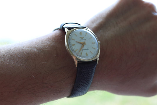 Vintage Wittnauer Herrenarmbanduhr. Runde Wittnauer-Automatikuhr aus den 1950er-Jahren mit 10 Karat Goldfüllung. M(50)