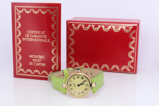 Genuine Cartier Watch. Must de Cartier Vendome Round Argent Vermeil White Face