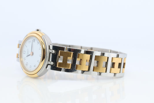 Genuine HERMES Stainless Steel 30mm Round Clipper Quartz Watch White.