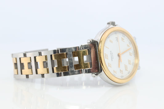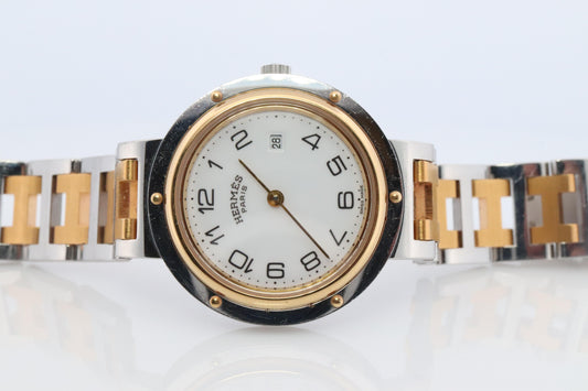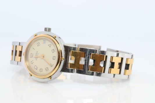 Genuine HERMES Stainless Steel 24mm Round Clipper Quartz Watch Champagne Dial.