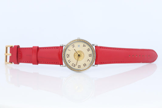Genuine HERMES Sellier 32mm Round SS and 18k Quartz Watch White Dial.