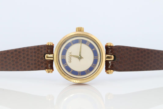 Vintage GUCCI Shelly Line Leather Watch Timepiece. 2000L Gucci Lane Blue and Red