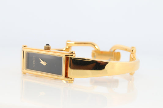 Vintage GUCCI 1500L Quartz Watch Timepiece. Gucci Gold Tone Bangle Wrist Watch
