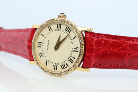 18k Cartier Diamond Watch. 18k YG Cartier x Baume Mercier Round Ladies Watch.
