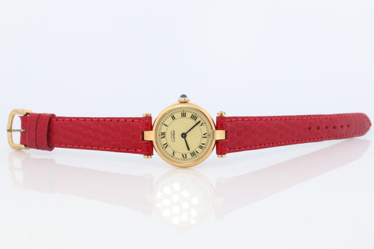 Genuine Cartier Watch. Must de Cartier Vendome Round Argent Vermeil White Face
