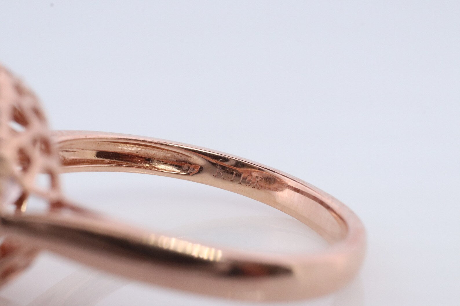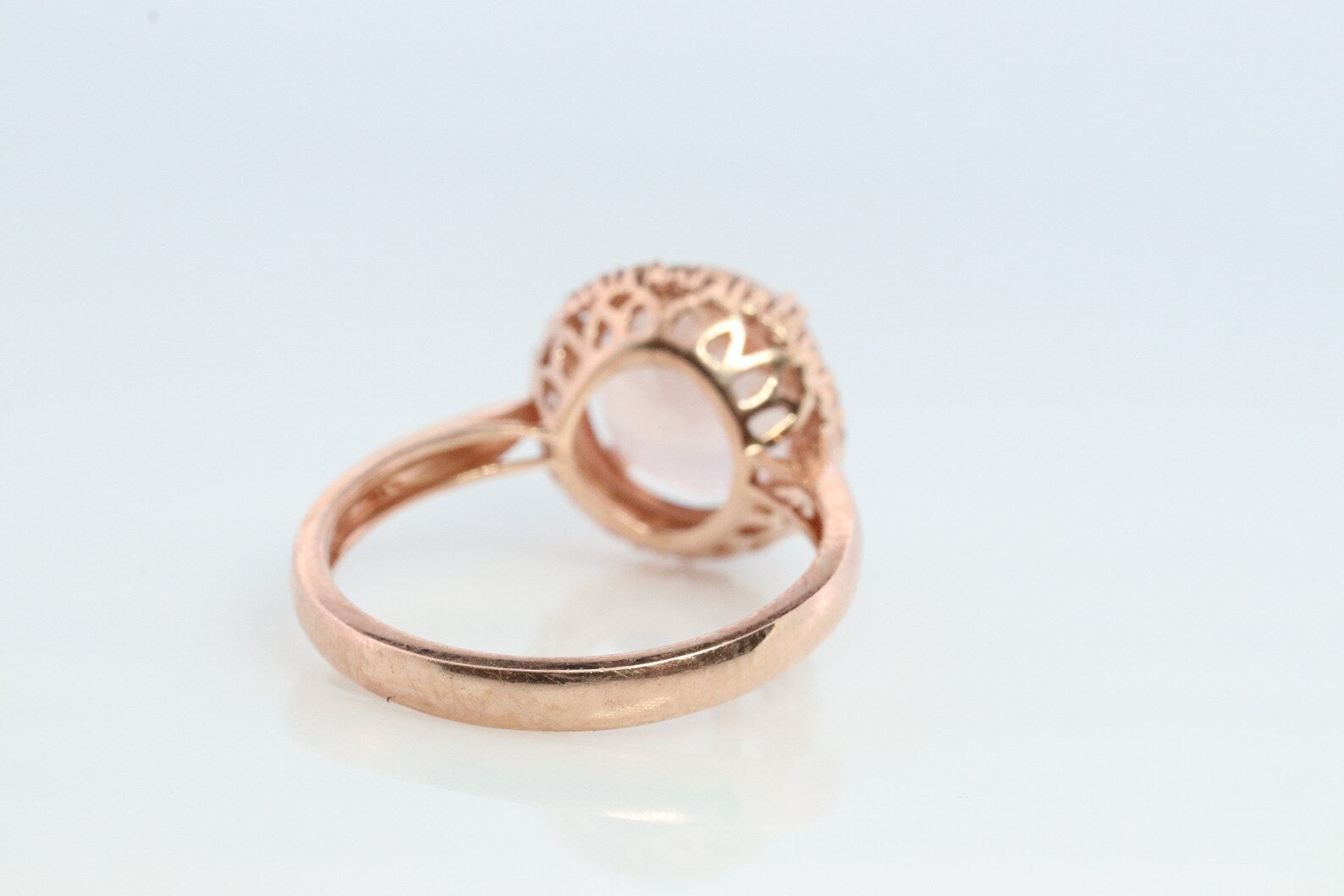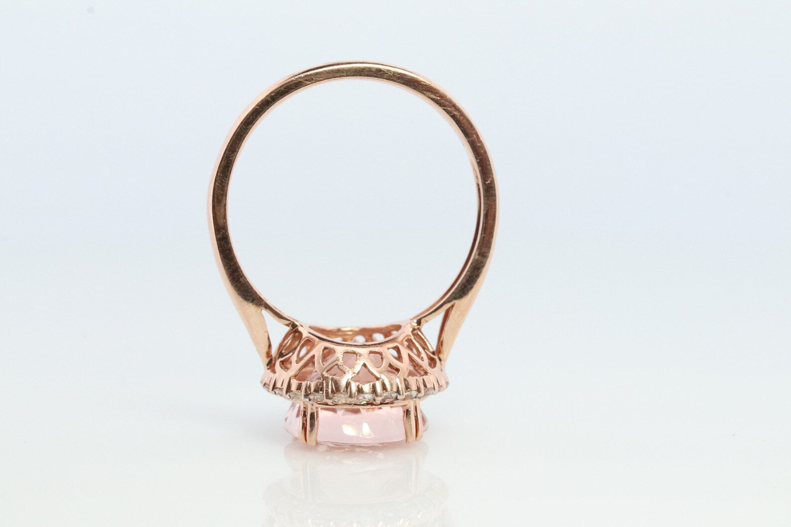 Halo-Ring aus 10 Karat Morganit und weißem Saphir. Runder Halo-Ring aus Roségold mit Morganit und Diamant (weißer Saphir). st(85)