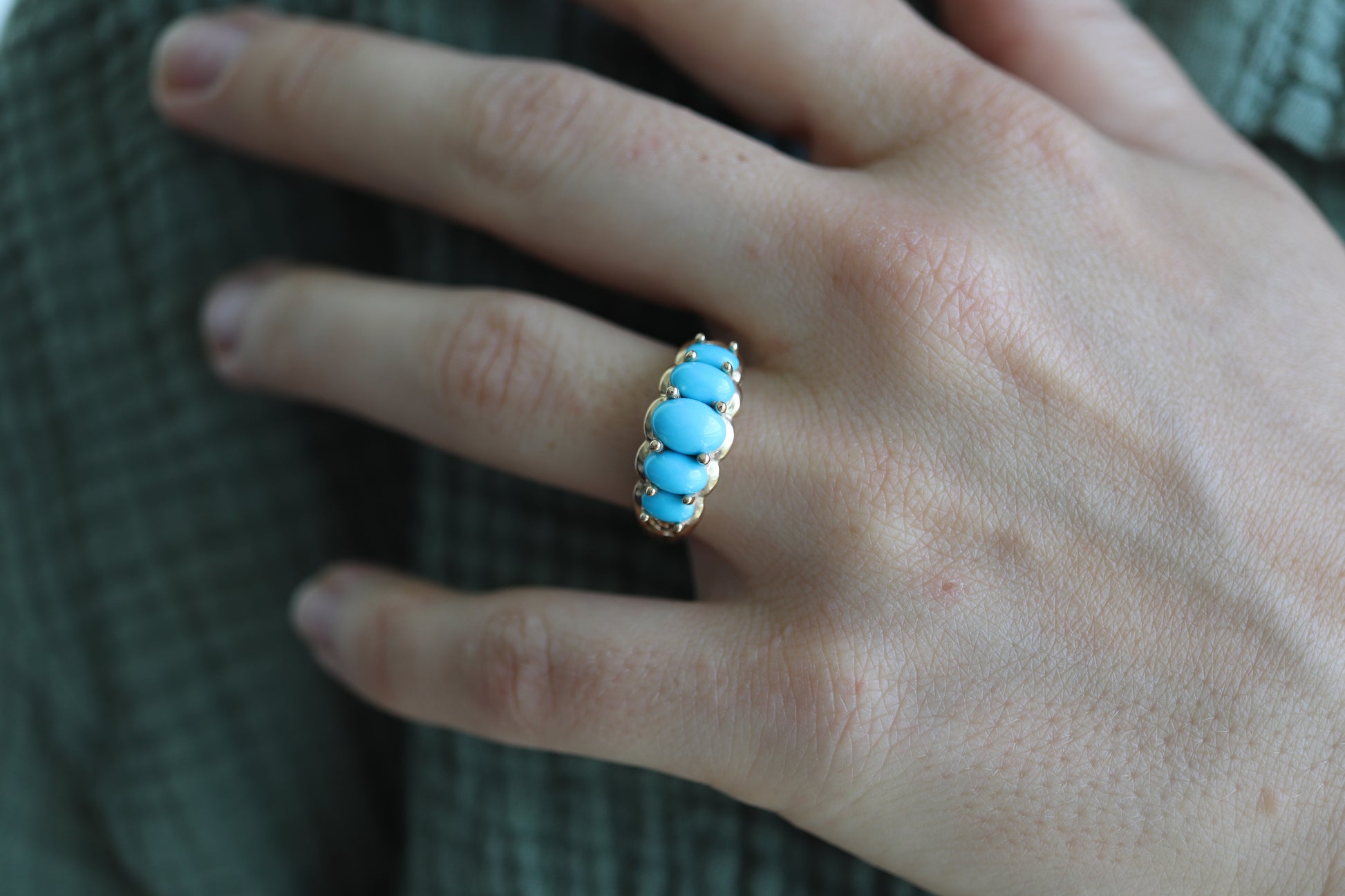 10k Oval Turquoise Cabochon Ring. 10k Aquamarine Turquoise Cluster Band.