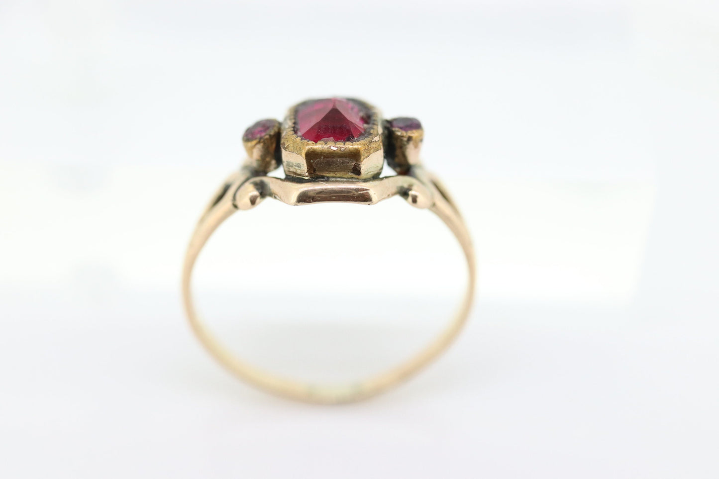 10 Karat viktorianisches Granat-Lünettenset. Antiker ovaler Granat-Krallen-Solitär aus 10 Karat Roségold. st(82)