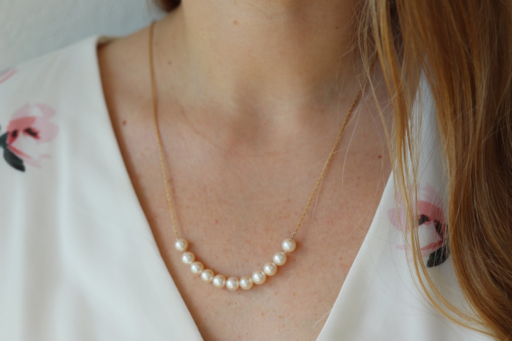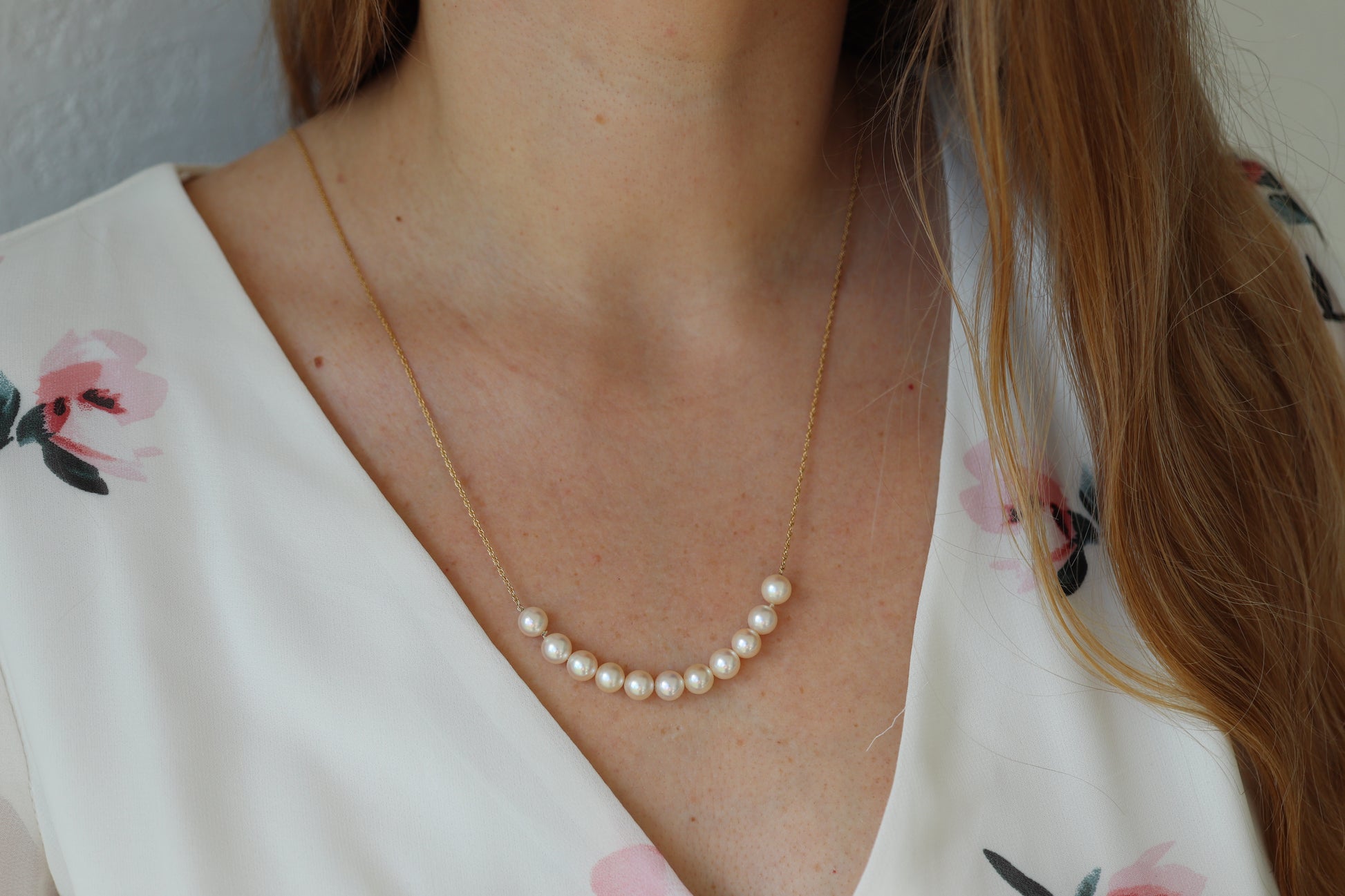 Halskette aus 14 Karat Akoya-Perlen. Lange Halskette mit Perlenkette. 27 Zoll lange 7 mm AKOYA-Perlen. Layering-Halskette. st(42)