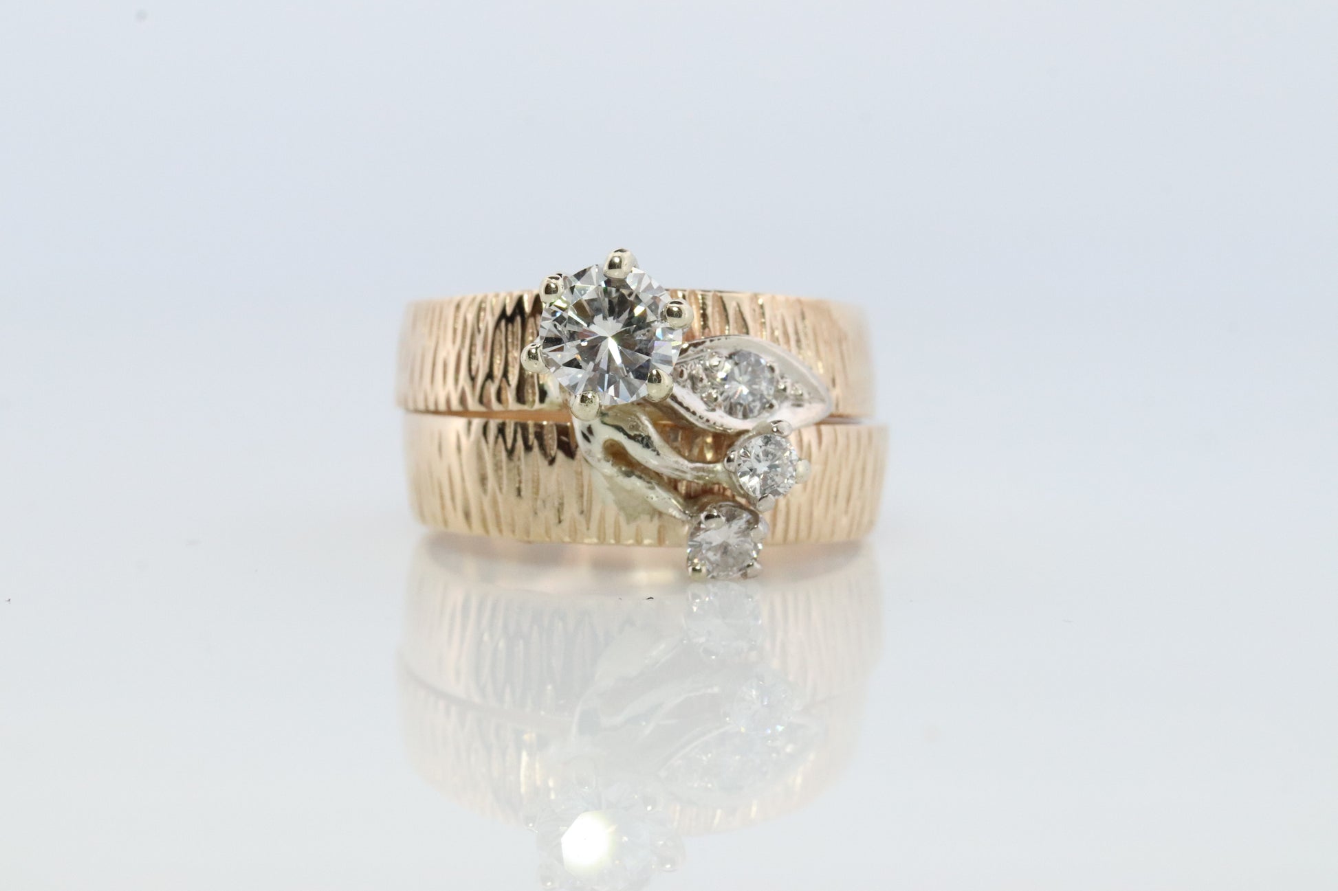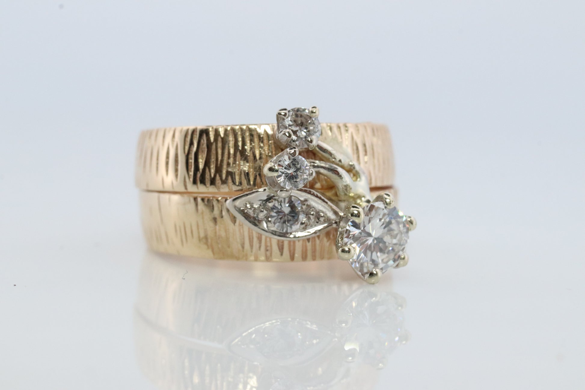 Ringset mit 14 Karat Diamanten. Hochzeitsset. Strukturiertes Verlobungsset. Brautring-Set. Diamantring-Set. st(330/11)