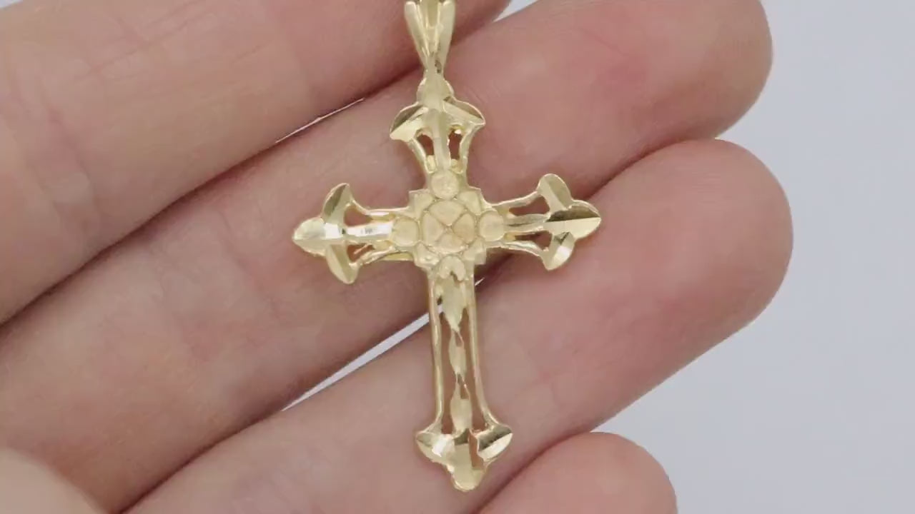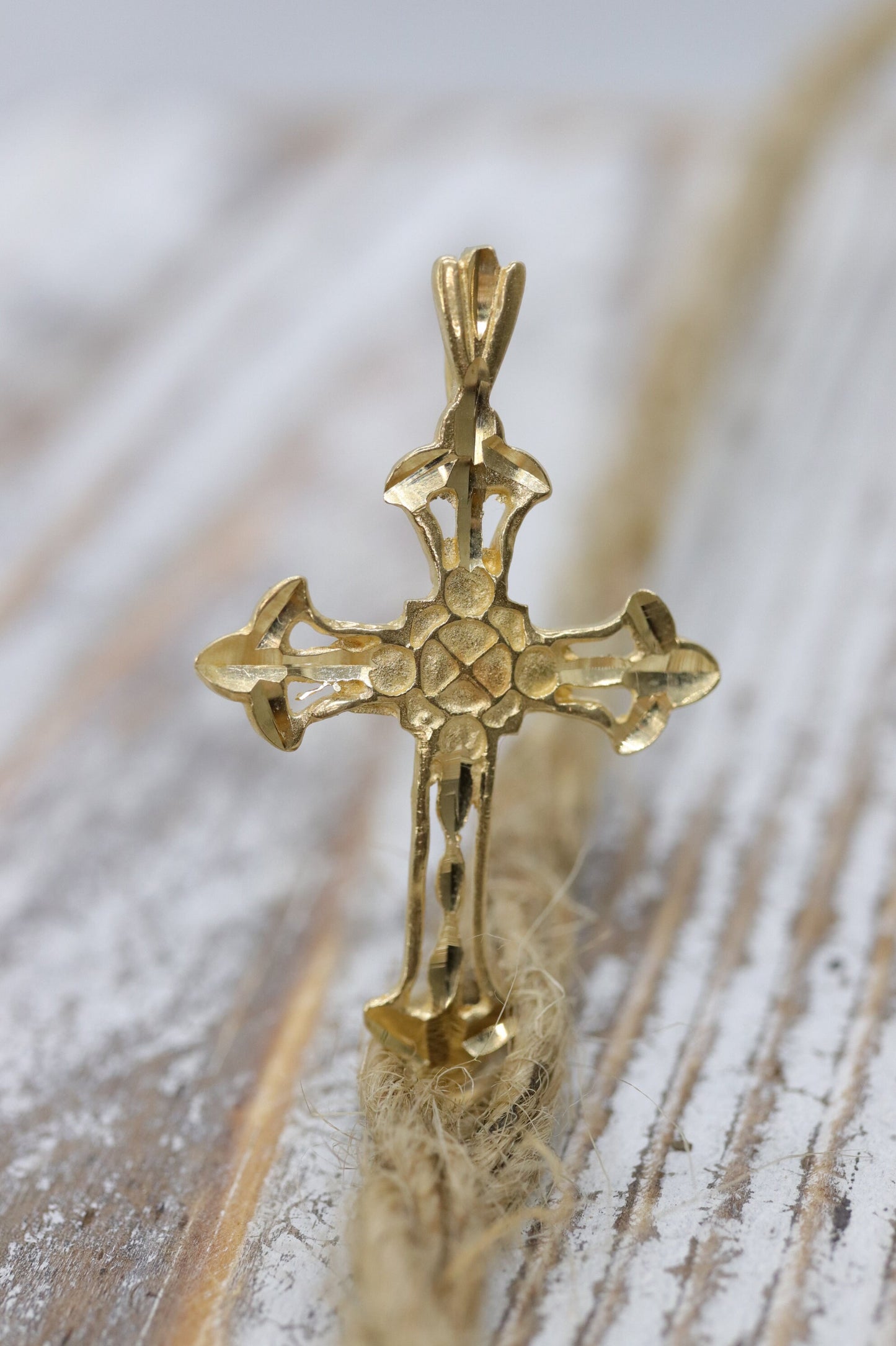 Kreuzkruzifix aus 14 Karat Gold. 14k graviertes Kreuz