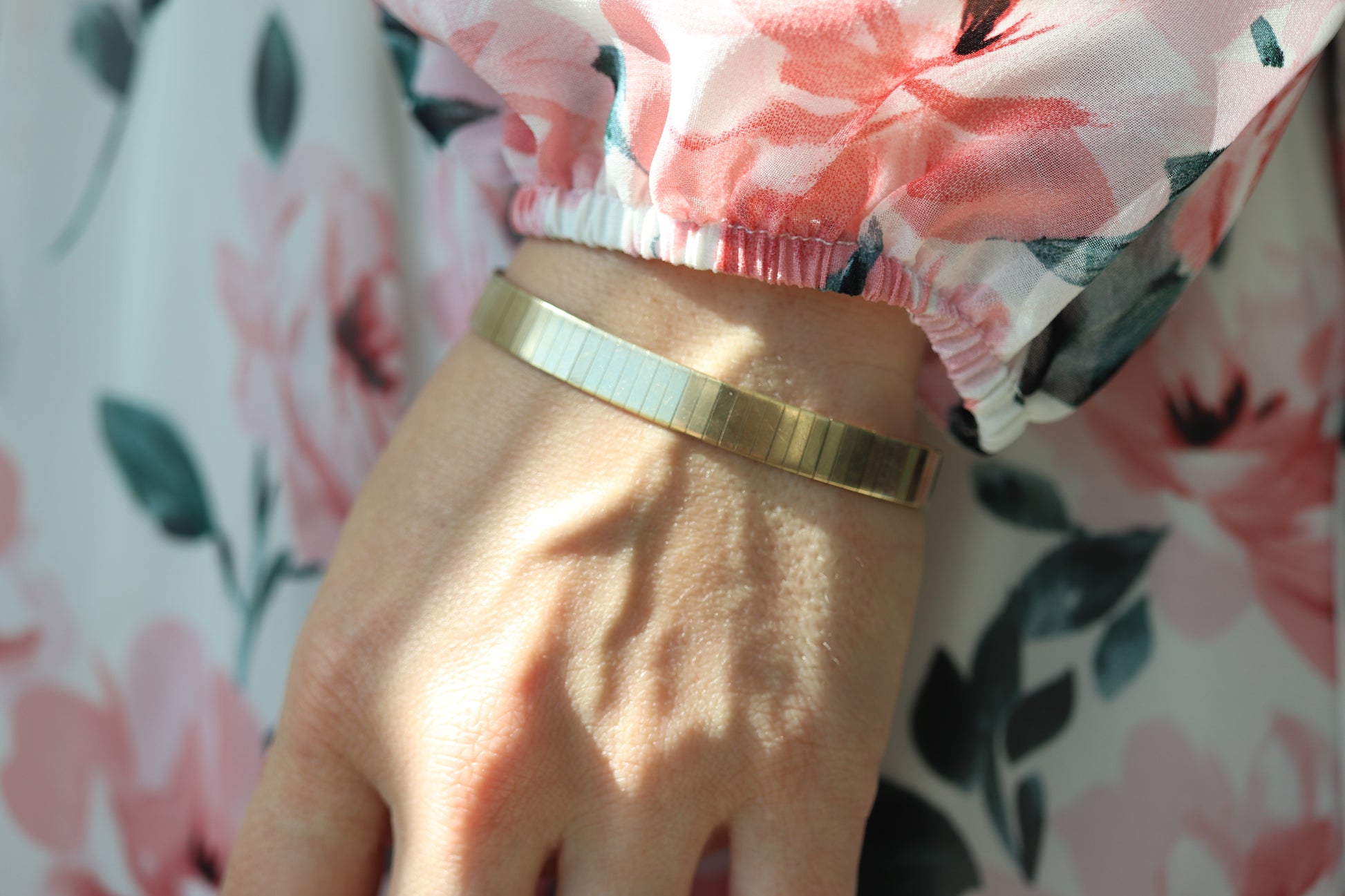 Wunderschönes, hochwertiges, breites Armband. Hergestellt von einem italienischen Designer. 14-Karat-Gelbgoldtests entsprechend. Schiebeverriegelung mit Sicherheitsstift.