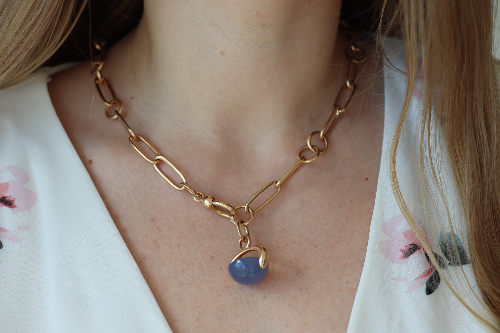 Halskette aus 18 Karat Roségold mit Chalcedon-Cabochon-Anhänger.