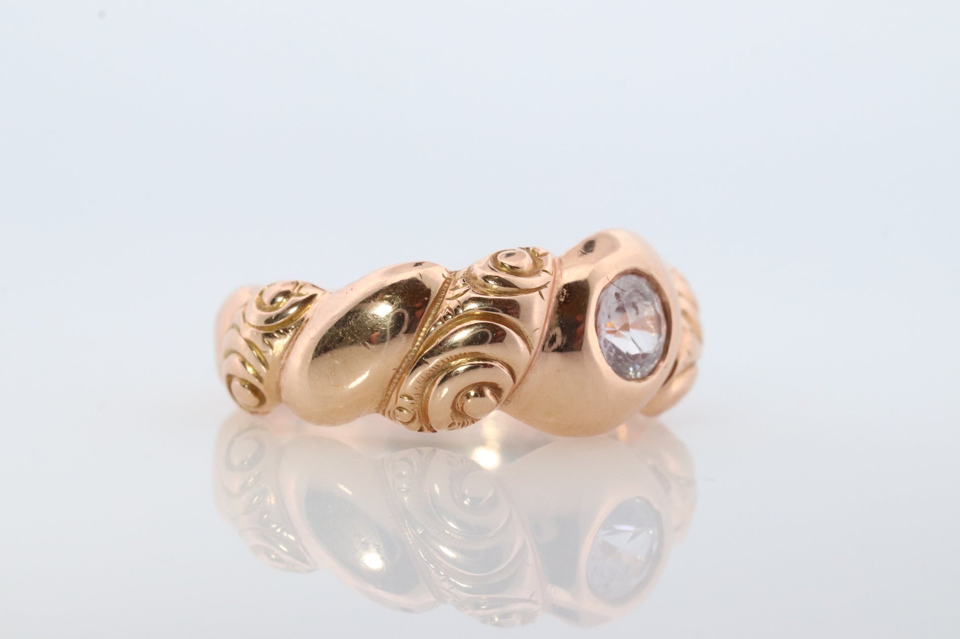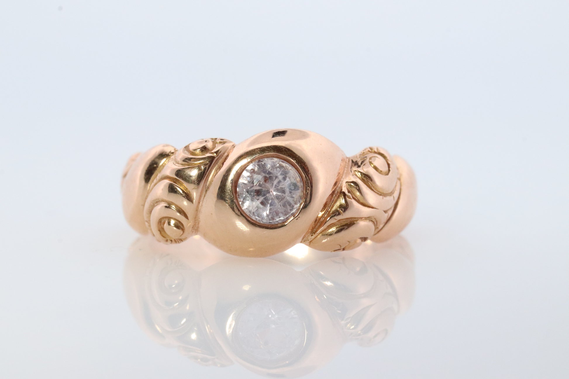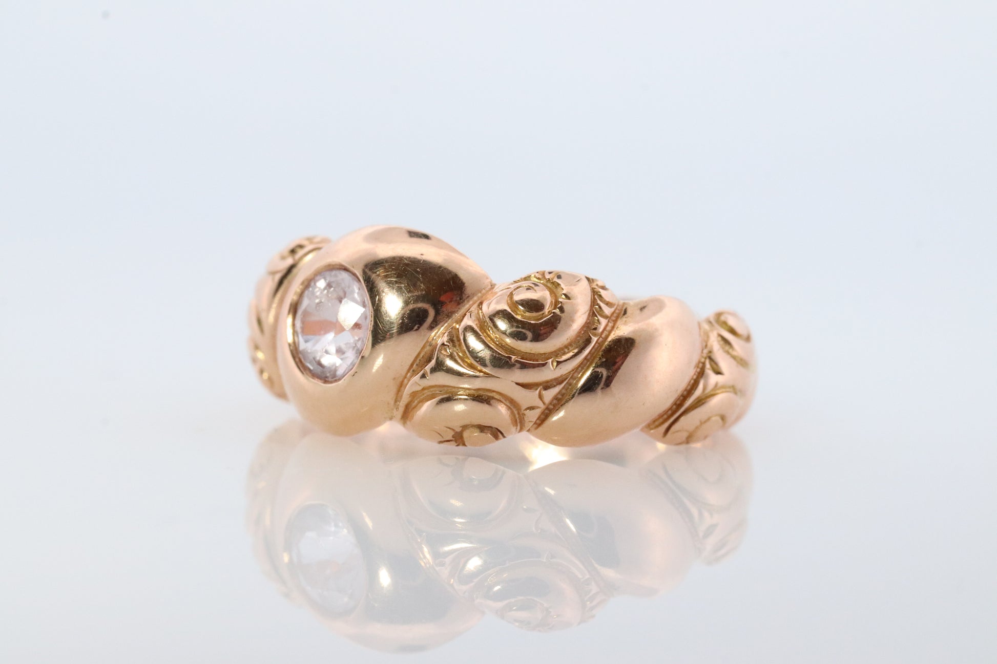 Antique Diamond (White Sapphire) Bezel Set Solitaire band. 14k Gold White Sapphire embossed Ring. Victorian Bezel set. st(184) Sz7