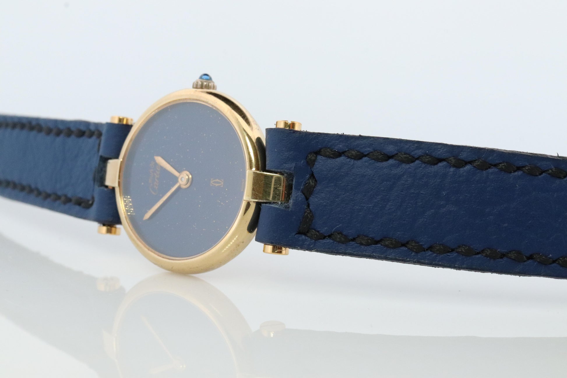 Cartier Watch. Must de Cartier Vendome Round Argent Vermeil Blue Night sky Dial.