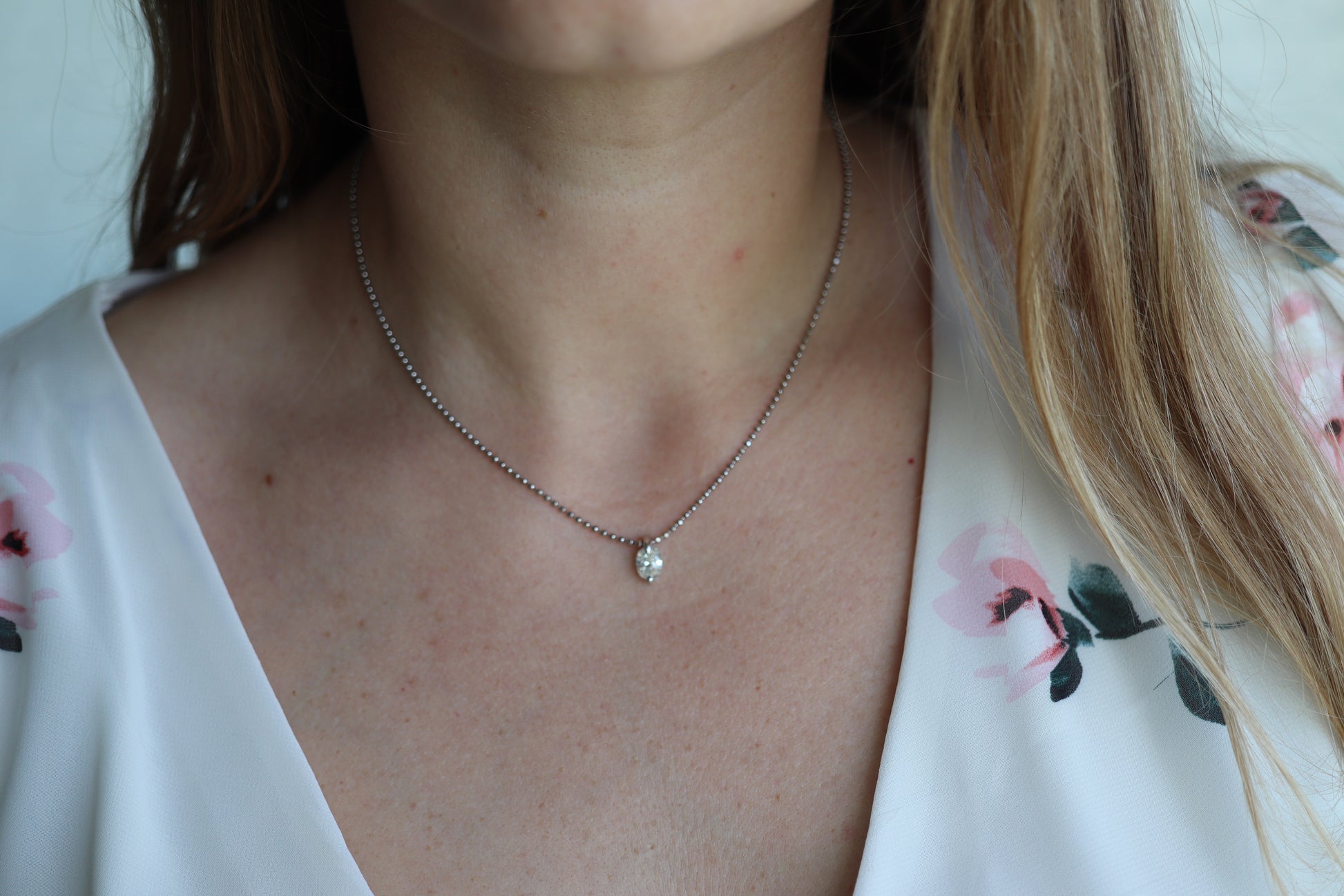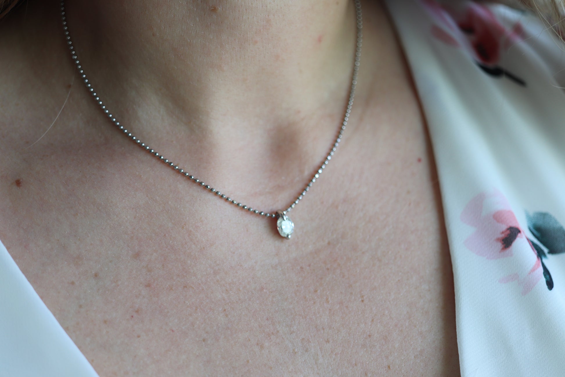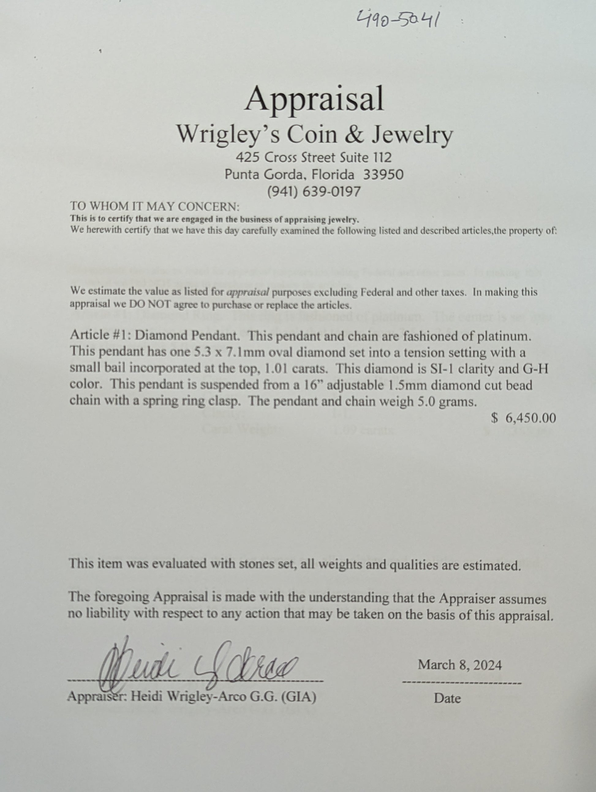 Large Diamond solitaire pendant. Platinum 850/900 Oval diamond 1CT Solitaire Pendant and Necklace. Tension set diamond