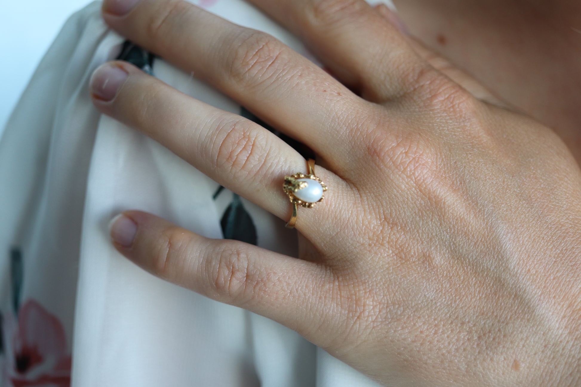 Mikimoto Ring. Vintage 18k Gold Mikimoto Pearl Solitaire. Mikimoto Pearl Natural Raw Nugget Design.