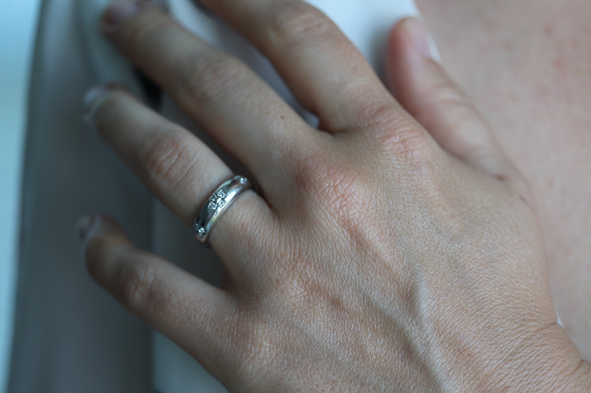Mikimoto Ring. Vintage Platinum Mikimoto Diamond Bezel set ring. Mikimoto Diamond Cluster Bombe band. Mikimoto PT900. Wedding band