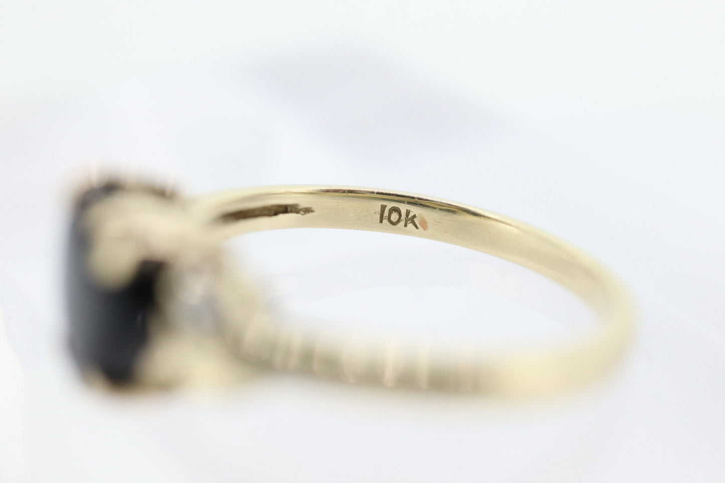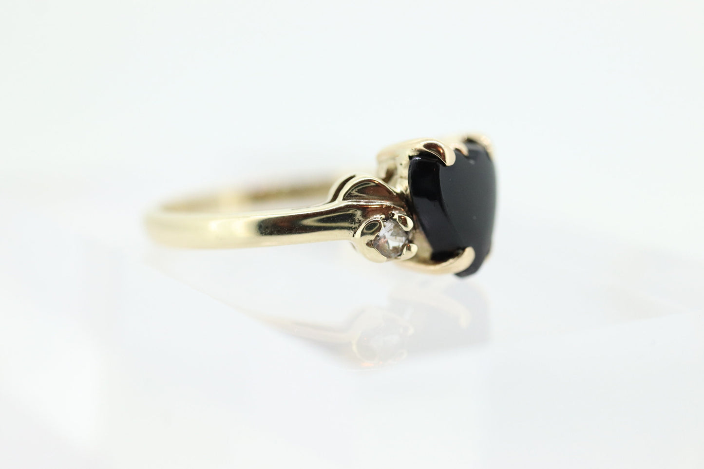 10k ONYX and diamond(CZ) HEART ring. Heart Onyx ring. st(120)