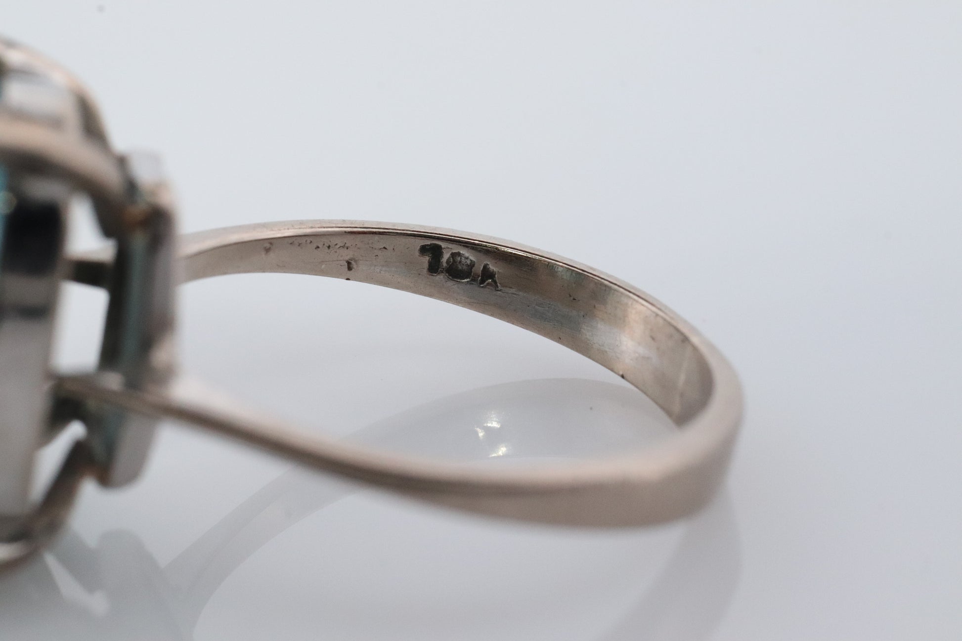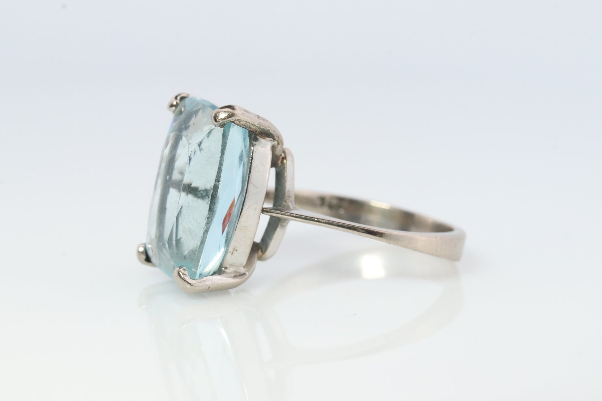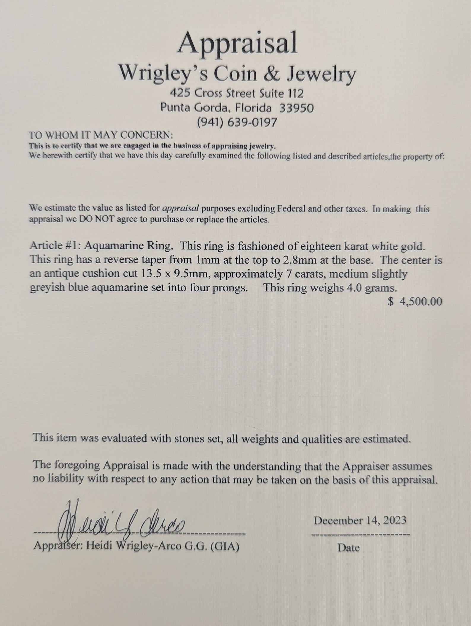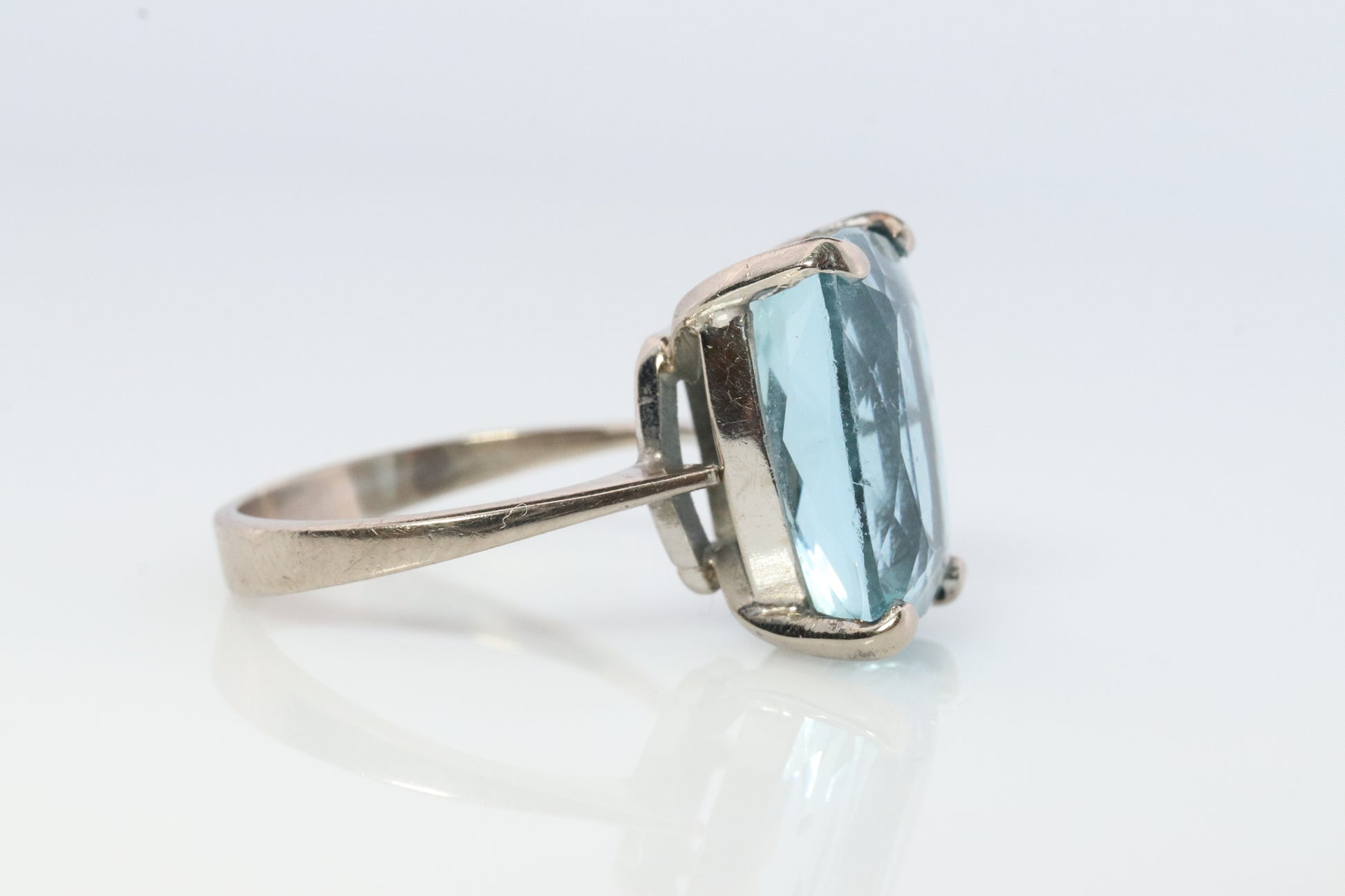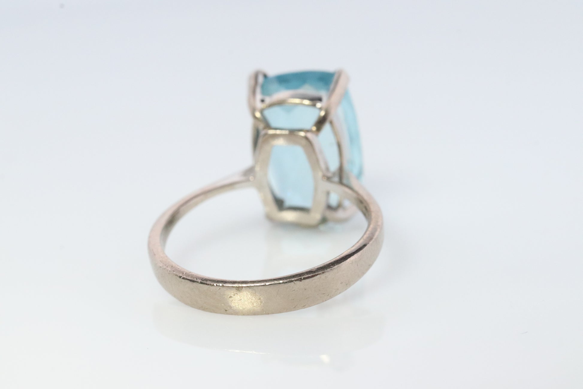 18k Aquamarine Solitaire ring. Huge Light Aquamarine 8.5ct Emerald cut gem. Engagement ring