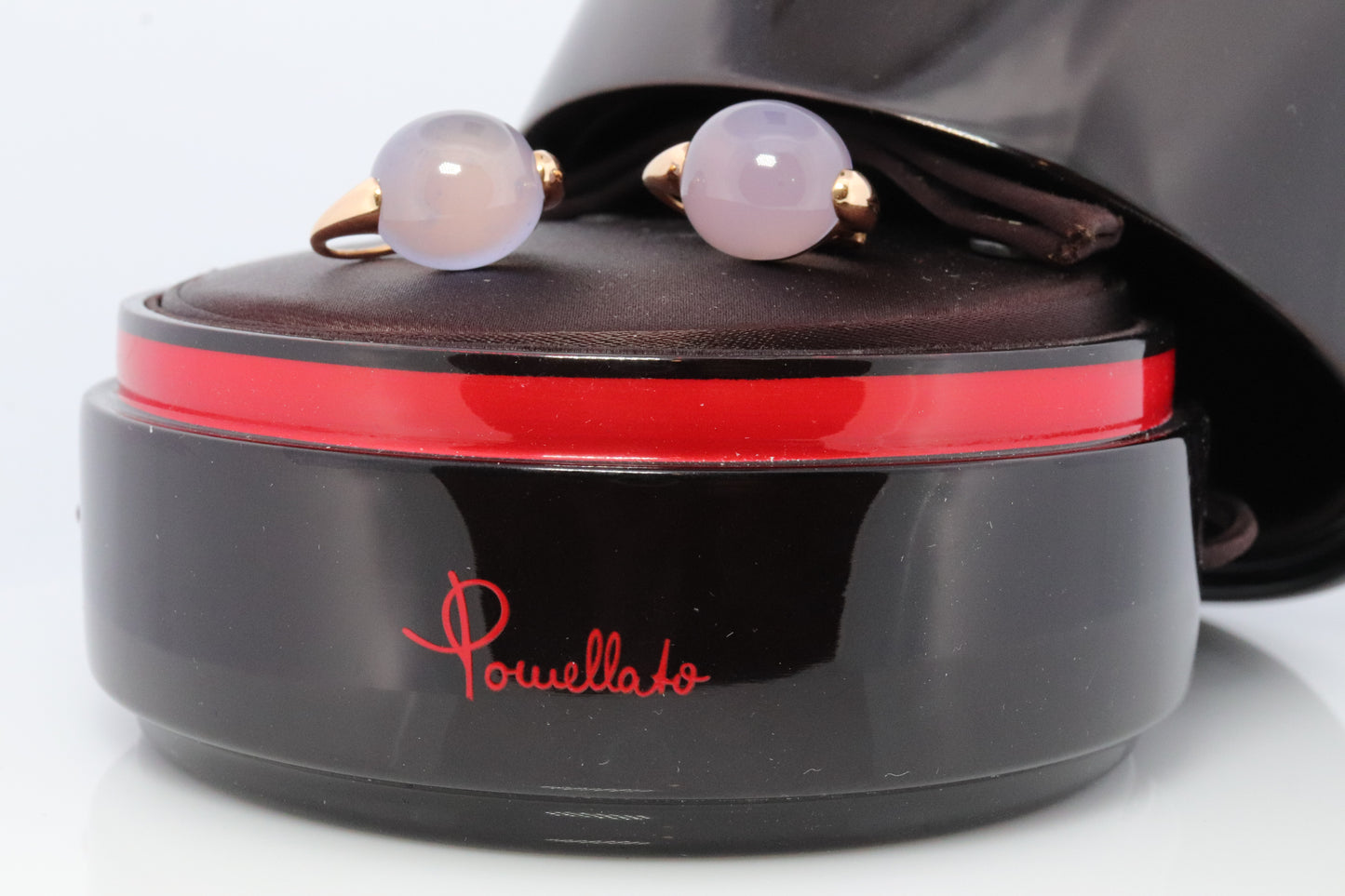 18k POMELATTO Earrings. 18k Rose Gold Pomellato Chalcedony LUNA collection. Chalcedinio Dangle earrings. st(10-06)