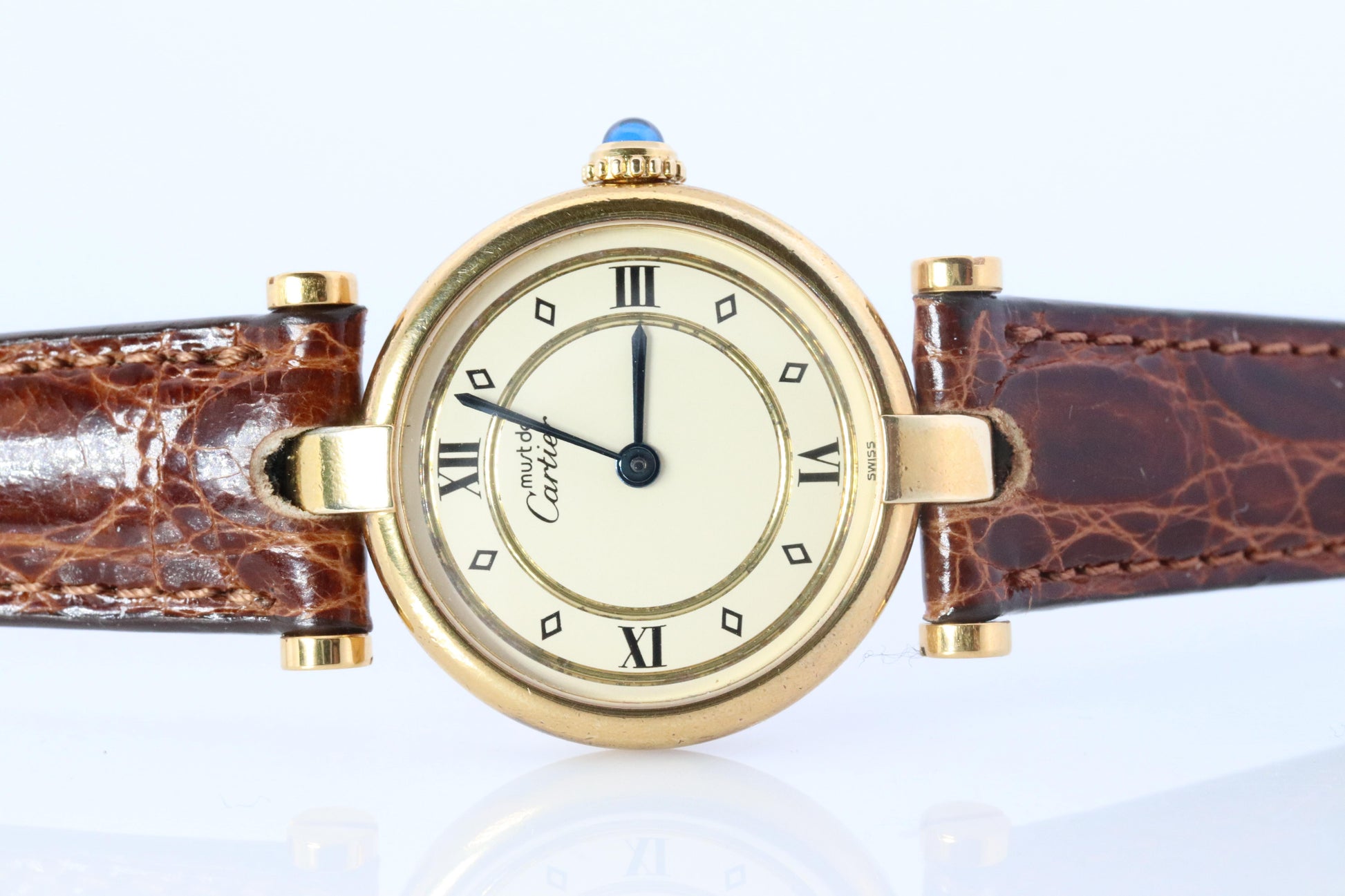 Genuine Cartier Watch. Must de Cartier Vendome Round Argent Vermeil Cream Gold